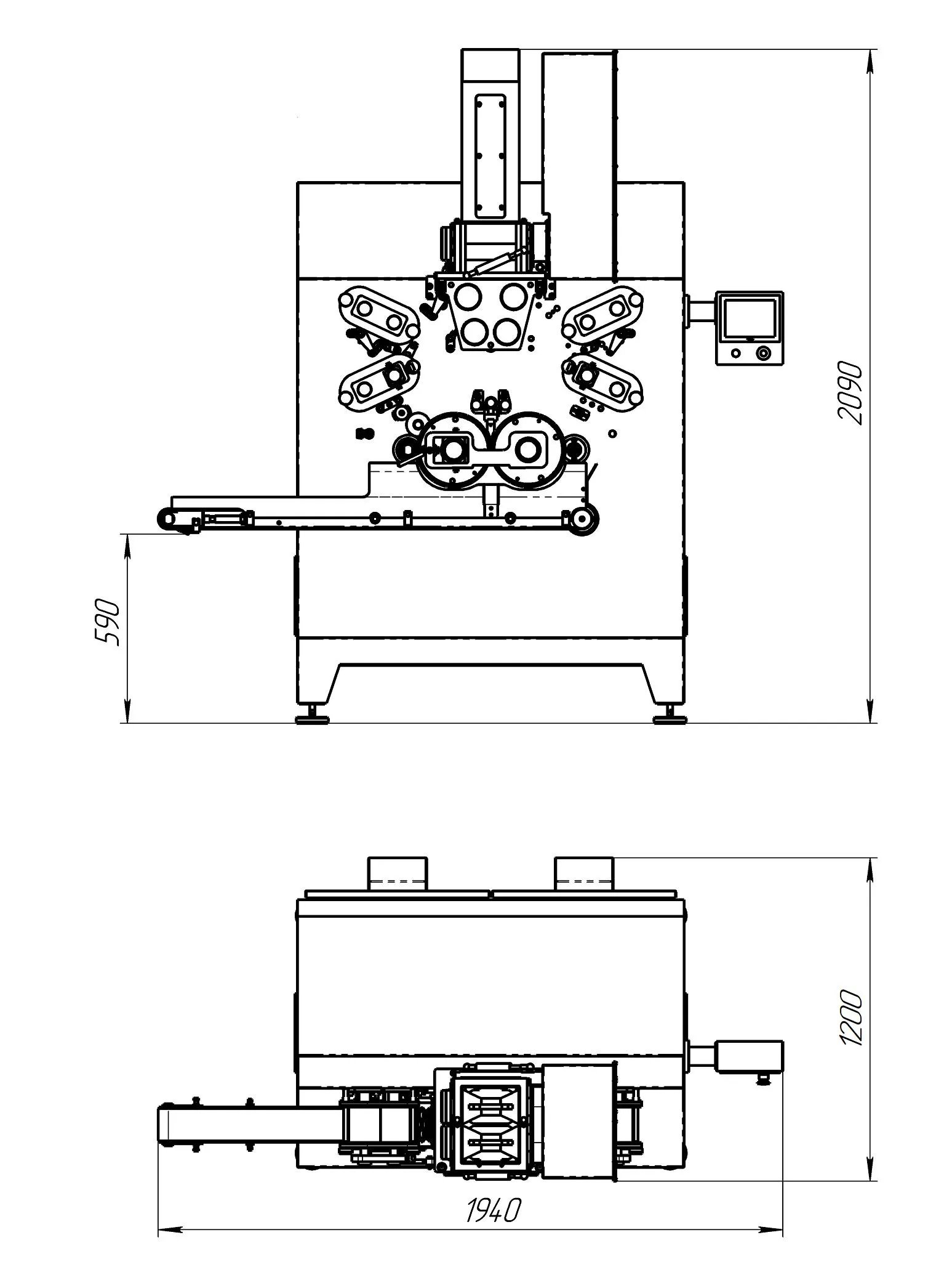 - Верхний и нижний тестораскаточные узлы производят две тестовых ленты определенной толщины, которые поступают в зону формования.